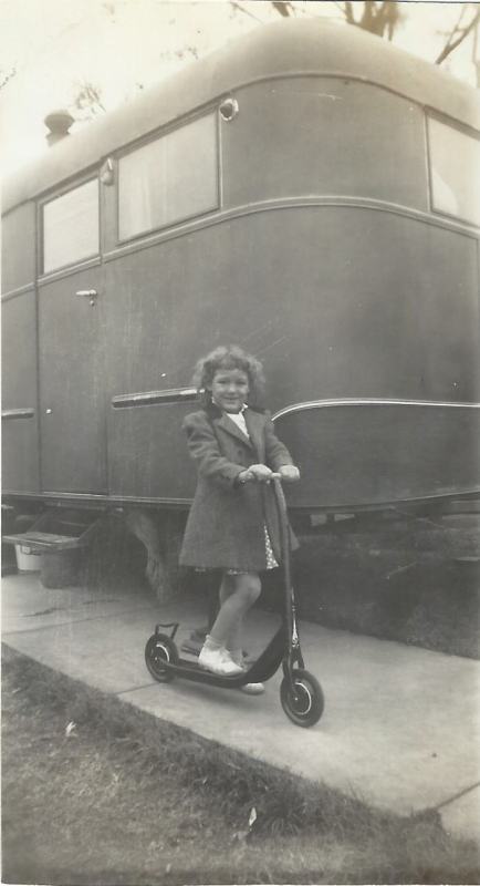 in front of their Airstream trailer in Austin in 1943