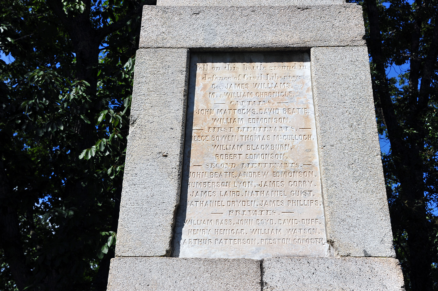 One of the 28 who sacrificed their lives that day was our ancestor, the lieutenant William Blackburn. If you click on his name above it’ll take you to another site like mine; Vicki Seibel has already compiled some interesting information on Lt. Blackburn. I guess Vicki and I are (very) far-removed cousins. You can see William Blackburn’s name on the monument below. (Oh, and just as an aside, Brian’s middle name is William. It came from both sides. ❤️)