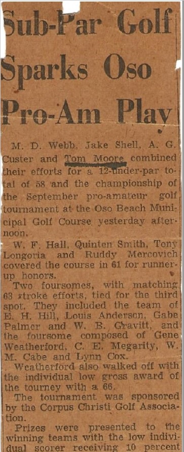 He always loved sports, and maintained an impressive golf score his entire life.  He won a Pro-Am tournament in Corpus Christi in 1953, and shot his age in 1991 (78 at 77).