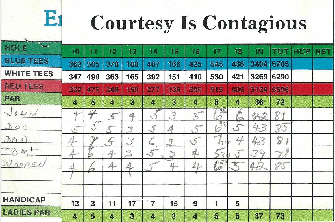He joined Brookhaven Country Club after moving to Dallas, taught grandson Chris to play at age 6 and provided him with golf clubs and equipment throughout his youth.  After he retired, TM often played with his three white-collar retiree golfing buddies: Don Fleming, John Harrison, and “Doc” Collinsworth, each of whom bought an annual senior’s membership card. However, he maintained his Brookhaven membership, hosting the retired fellows every now and then.