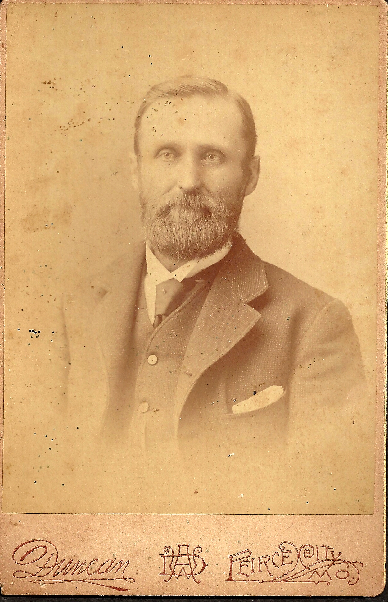 In 1876 James was a Justice of the peace at Cassville. He practiced law in Cassville throughout his life, though it appears they eventually resided at Pierce City, Missouri, 25 miles to the north, in Lawrence County. The 1880 census shows James and Rachel in Capps Creek, which is 5 miles south of Pierce City, and this may be where they built their house. They had Josiah S. (11), Alexander Milton (9), Julia (7) and James A. (3). (Austin may have passed away for he is not seen again in any records.) Another son, Herbert Earl, was born in 1884, but he would pass away at the young age of 20 years, from typhoid fever while working for the Missouri Pacific railroad in St. Louis.